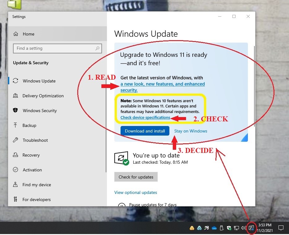 3. Decide if you want the upgrade or to stay on Windows 10